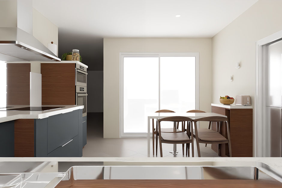 Pour le projet Couture, nos clients souhaitaient moderniser leur cuisine en chêne massif sans tout remplacer, dans la perspective d’une vente à court